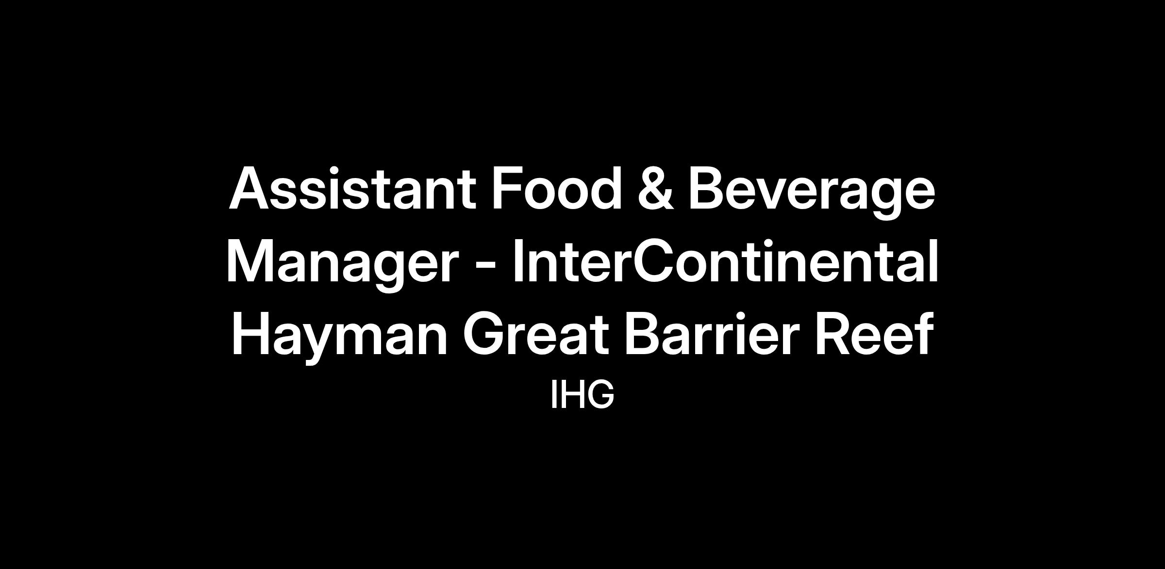 As Assistant Food & Beverage Manager you’ll be responsible for providing day-to-day assistant and leadership, supporting strategic direction across the food and beverage operation of the resort; maximising financial returns, driving development of people, creating and maintaining unique guest experiences, executing on brand standards, and building awareness of the resort, its product offerings and brand in the local community. In addition, the role is also responsible for ensuring compliance with all governmental regulations concerning health, safety, or other licensing and applicable legislative requirements.