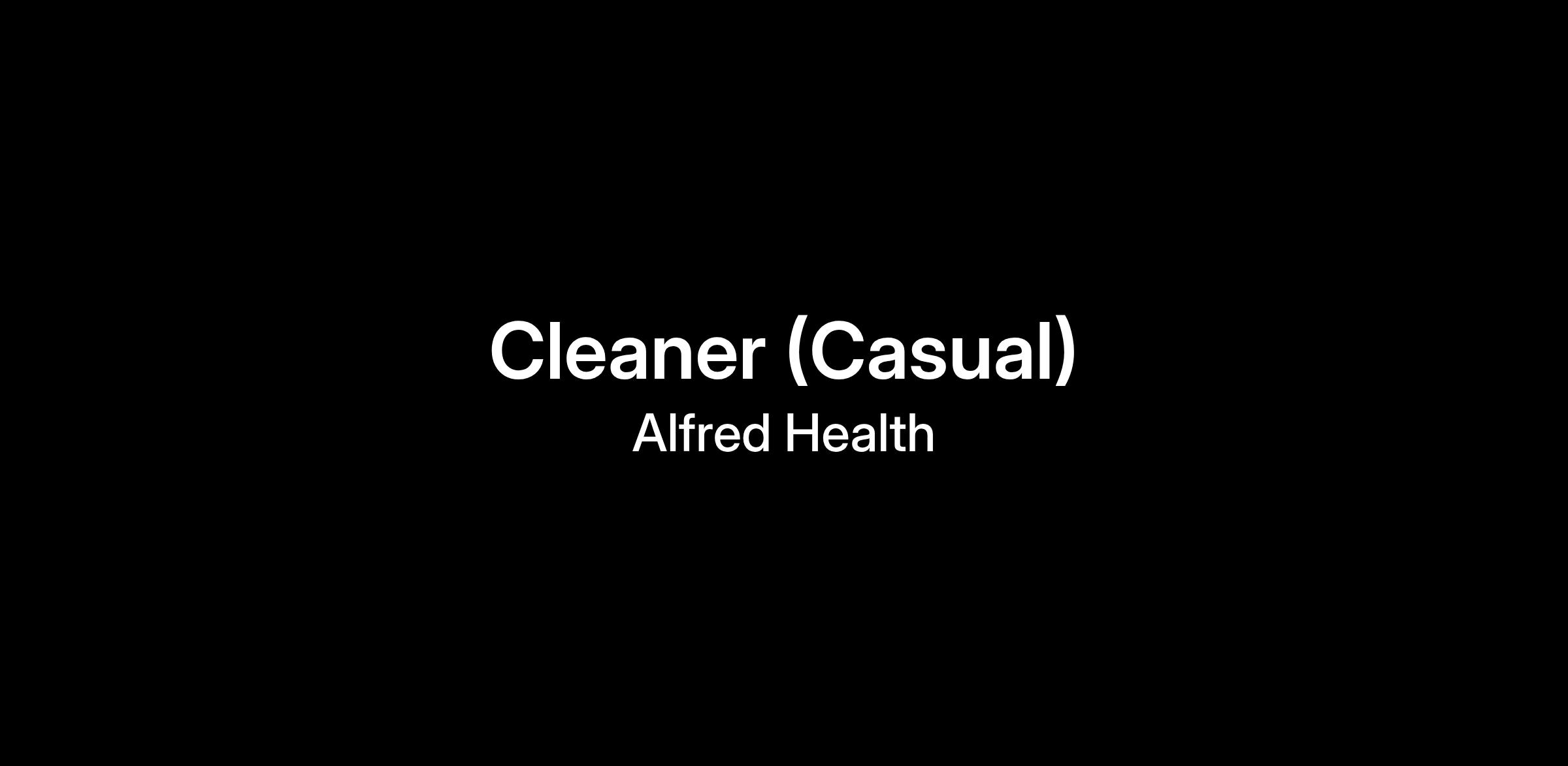 For enquiries regarding this position, please contact Craig Pover, Cleaning Services Manager - cr.pover@alfred.org.au