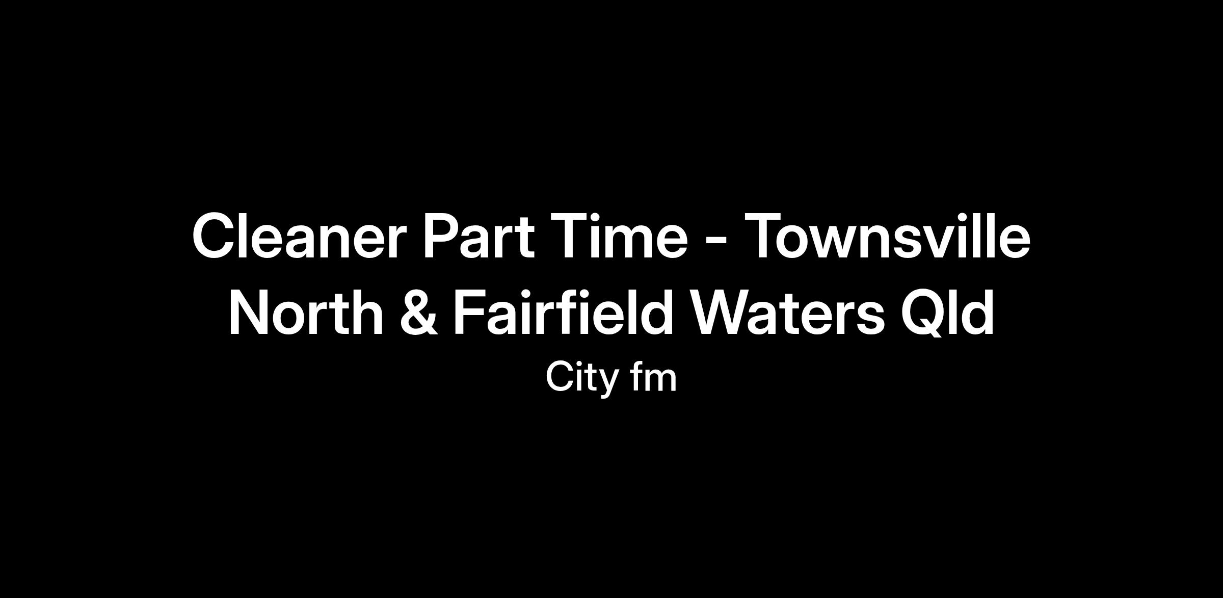 THE OPPORTUNITY What we offer our team:Part-time fixed term contract until June 2026Uniform and PPE provided Competitive hourly rate + 15% part time loadingDiscounts hub with exclusive discounts across major Australian retailers Your key responsibilities will include:Carry out general commercial cleaning dutiesOperate cleaning machinery (training provided)Maintain all chemicals and equipmentAdhere to all City Health and Safety (Think Safe) policies and procedures Available shifts: Townsville North:Tuesday 6.00am to 11.00am Wednesday 6.00am to 11.00am Fairfield Waters:Thursday 6.00am to 10.45am Friday 6.00am to 11.00am To be considered for this role you will: Have a great attitude and willingness to learnOwn a smart phone - essentialObtain a current driver’s licence and car (desirable)Have Australian working rights If you would like the opportunity to be part of a growing Australian Facilities Management business, we would love to hear from you. City is an Equal Opportunity Employer who supports and encourages the diverse needs of each individual Team Member. City does not accept any unsolicited resume referrals from Recruitment Agencies. City will not pay any placement fees relating to unsolicited resume referrals.