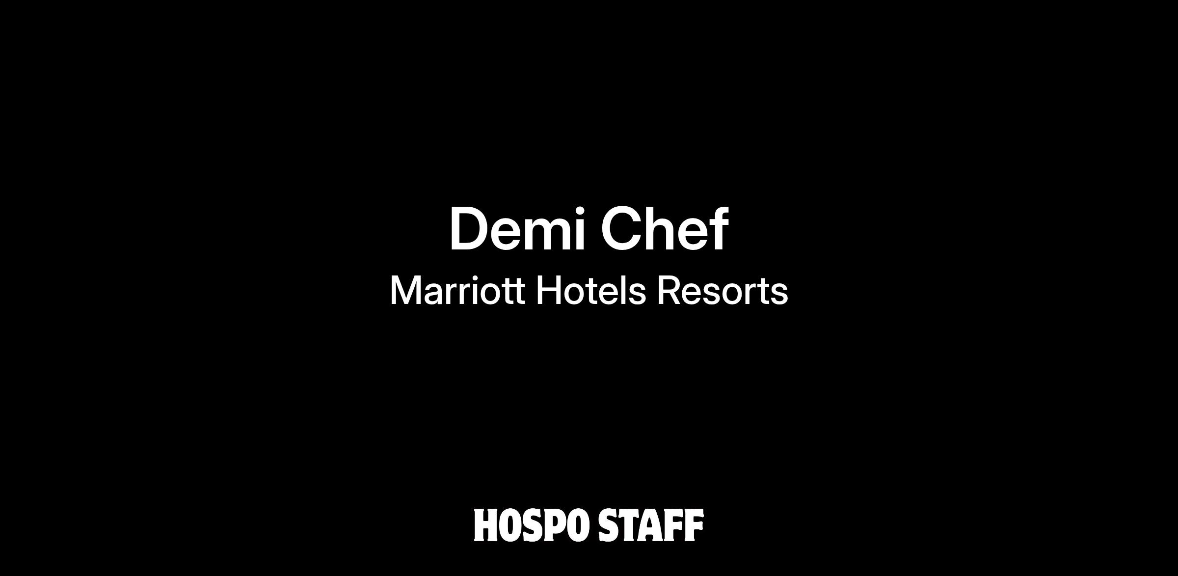 DescriptionAs Marriott International’s flagship brand, Marriott Hotels drives innovation in our industry. Be part of a collaborative team of creative, dynamic people setting the pace in the industry. Find your place in an environment built on strong relationships where every associate is empowered to make an impact and valued for their contributions. When you become a Marriott Hotels Demi Chef, opportunity awaits.