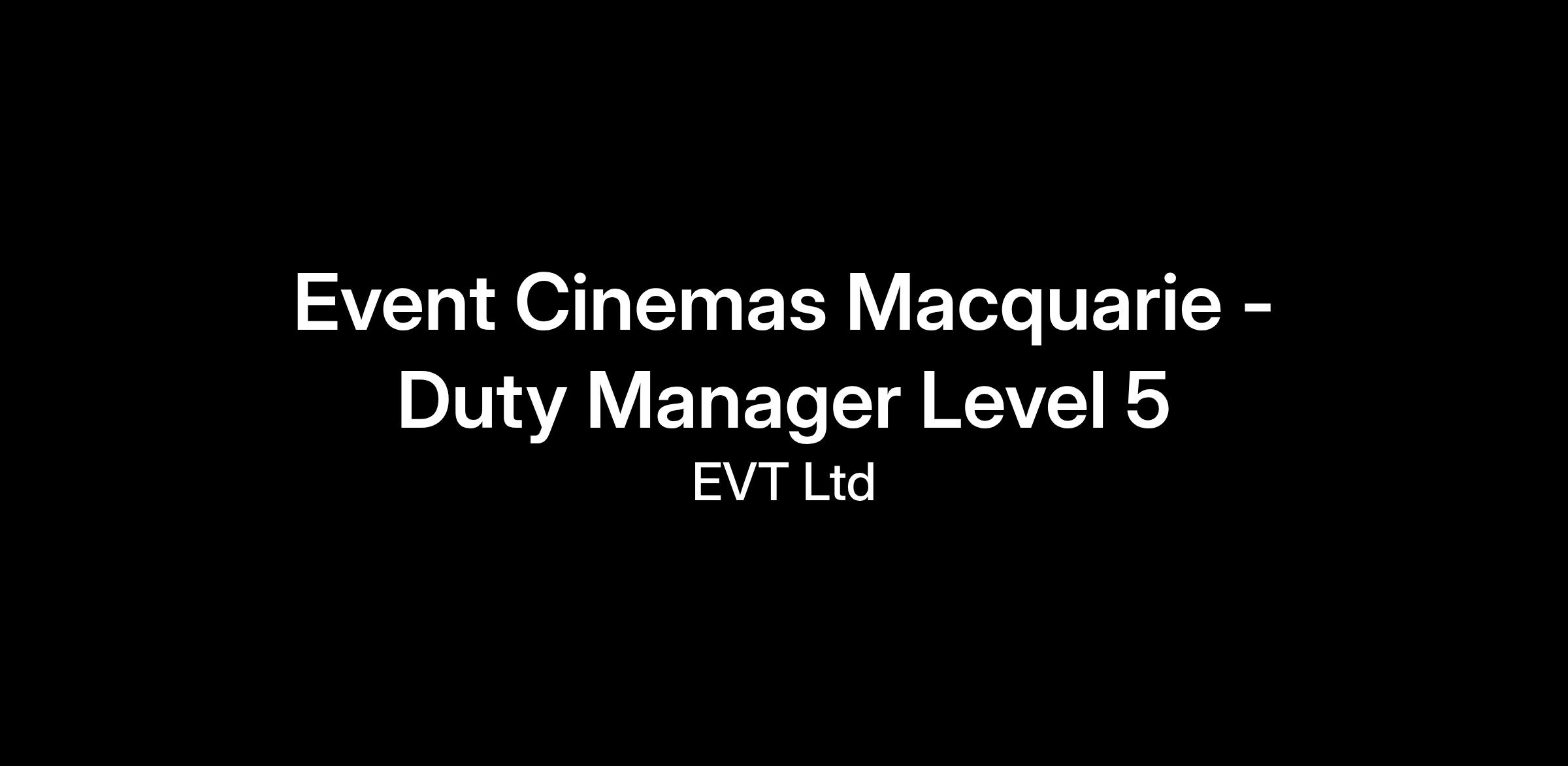 Cinema Worker Level 5 Key AccountabilitiesIn addition to the key accountabilities for Levels 1, 2, 3 and 4, a Level 5 team member is also accountable for: