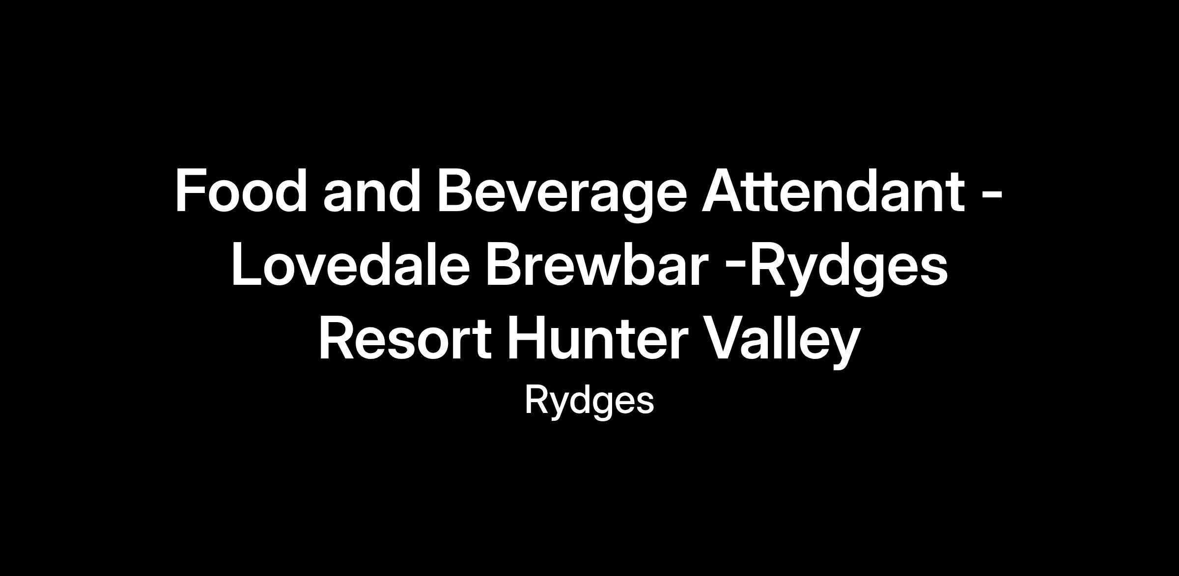 Rydges Resort Hunter Valley is part of EVT, and being a part of EVT means believing in changing the game. Why? Because no one wants ordinary. If you're seeking to be part of the kind of wow-factor moments you can help shape, then you've come to the right place. About EVT: As market-leading experience creators, we bring to life some of the best-known brands and properties in entertainment, ventures, and travel. Our portfolio includes over 140 entertainment experiences like Event Cinemas and Moonlight Cinemas, 150 award-winning restaurants and bars, and 80+ hotels, including QT, Rydges, Atura, LyLo, Independent Collection by EVT and Thredbo. Our ventures include a ~$2.3B property portfolio and hotel management, just to name a few. About Rydges: Proudly Australian & New Zealand owned, Rydges Hotels & Resorts provides a diverse range of elevated city, suburban, and resort-style hotels. From classic charm to sophisticated style, our properties have every detail considered to deliver a refreshingly local experience with exceptional comforts catering to all guests. Join our team of local heroes dedicated to enhancing every guest’s stay. Located in the heart of Australia’s premier wine region, situated across an enormous slice of pristine countryside. Rydges Resort Hunter Valley is a vibrant 418-room resort an all-encompassing destination for leisure, conferences, and unforgettable events. As home to the award-winning Hunter Valley Conference and Events Centre which caters from 10 to grand celebrations for over 1,100 guests. 2025 Hunter Valley Legends AwardsHunter Valley Accommodation Operator of the YearWe’re looking for enthusiastic, customer focused casual Food & Beverage Attendants to join our dynamic team at our large hotel resort in our Lovedale Brewbar outlet. About the Role: We seek individuals with dynamic personalities who can both delight and entertain our guests. Ideal candidates should possess an excitable passion for the hotel and hospitality industry, coupled with an eagerness to gain experience that will propel their career growth within our company.Key Responsibilities:• Providing exceptional food & Beverage service in our hotel venue Lovedale Brewbar. From making cocktails & spirits, pulling beers from our onsite brewery, making coffee, taking orders & running food from the pass, clearing tables and jumping in where needed are all in a days work!• We are offering casual roles for those hearty and ready to work within a high paced hotel environment.Skills & Experience: • Having previous experience in a similar role at a high-volume venue is desirable but not essential.• A positive attitude and a broad smile! • A team player to help each other out!• Enjoy engaging in 'hands-on' activities.• Exceptional customer service skills with a temperament to match.• Passion for the industry• To work in Australia, one must either be an Australian resident or possess the necessary working rights.• The capability to work mornings & evenings, weekends, and public holidays.• Current RSA or willingness to obtainBenefits & Perks: • Incredible team member discounts from your first day on-the-job. • 50% off stays at EVT hotels – Rydges, QT, Atura, Lylo and more. • $2 movie tickets, plus Moonlight, Gold Class, Candy Bar discounts and more. • Awesome winter and summer savings and discounts at Thredbo. • Rapid career growth opportunities through our EVT network. • Local community involvement, volunteering and charitable giving. • Australia and NZ’s largest and most diverse experiences company Join Rydges Resort Hunter Valley and become an EVT experience creator, opportunity taker, the ultimate Daymaker. Join and make a positive impact on our people, communities, and environment every day.