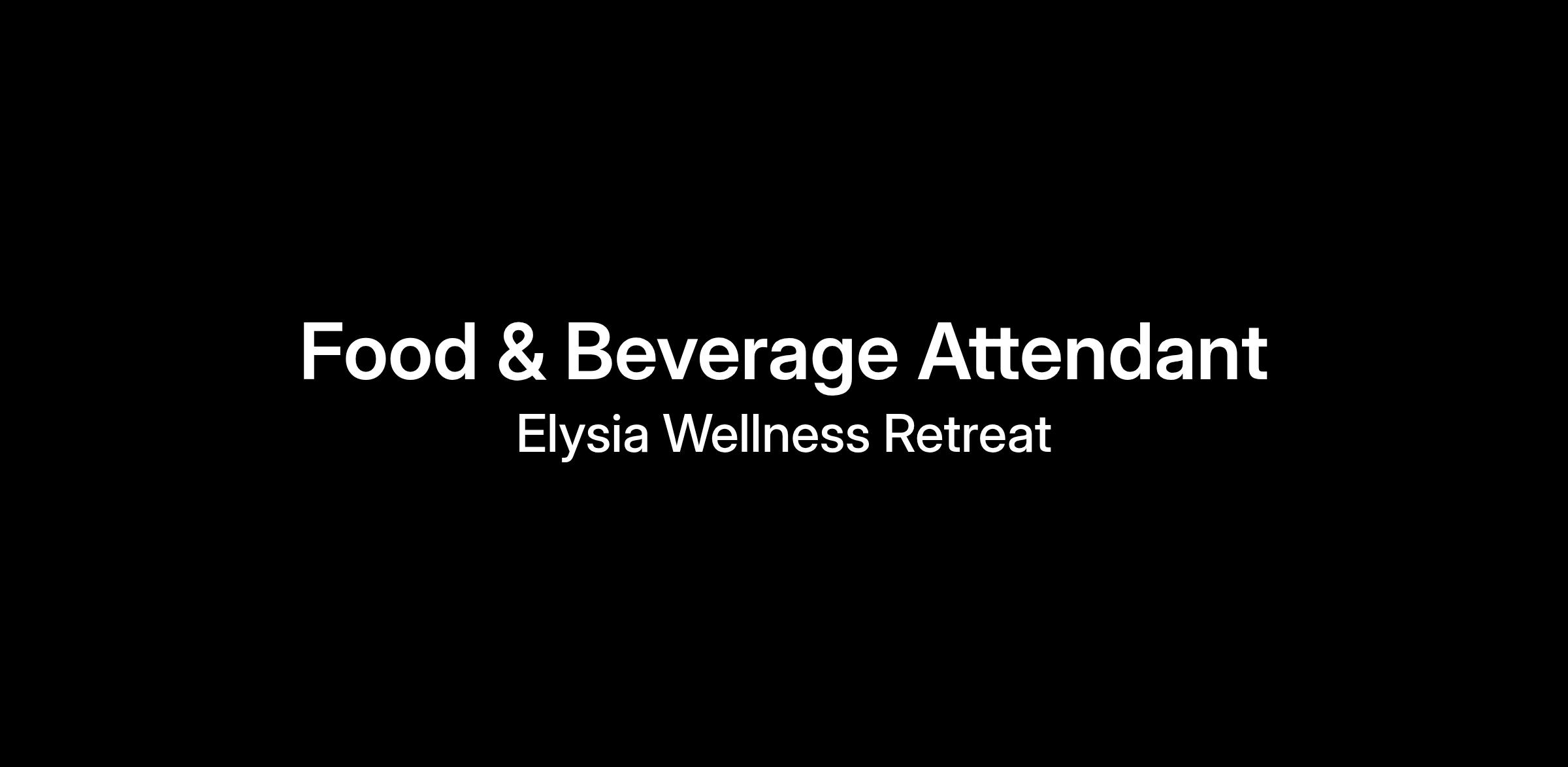 Elysia Wellness Retreat are looking for enthusiastic and service-driven Food and Beverage Attendants to join our team on a Full-Time basis.