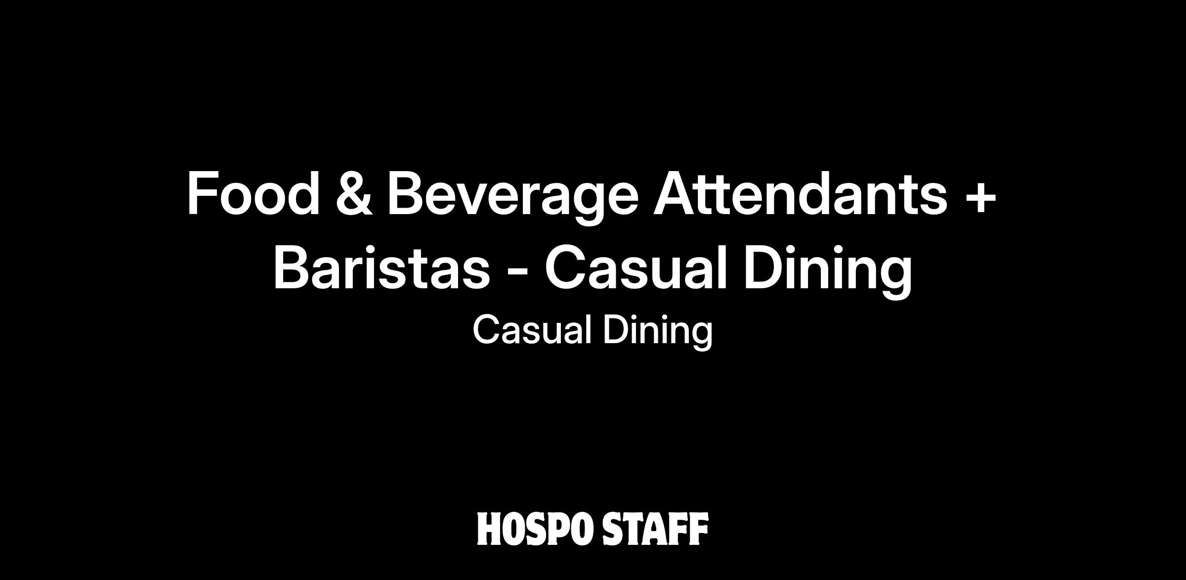 Continue your career with us as the Food & Beverage Attendant at one of our casual dining venues!