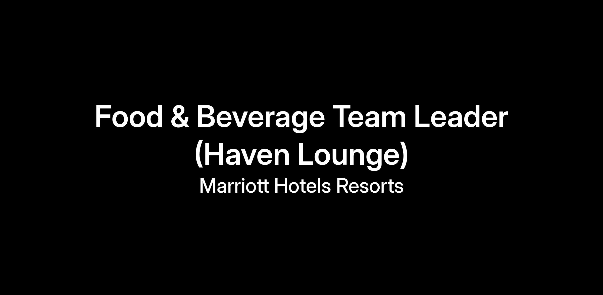 We are looking for a Food & Beverage Team Leader to join the Haven Lounge.