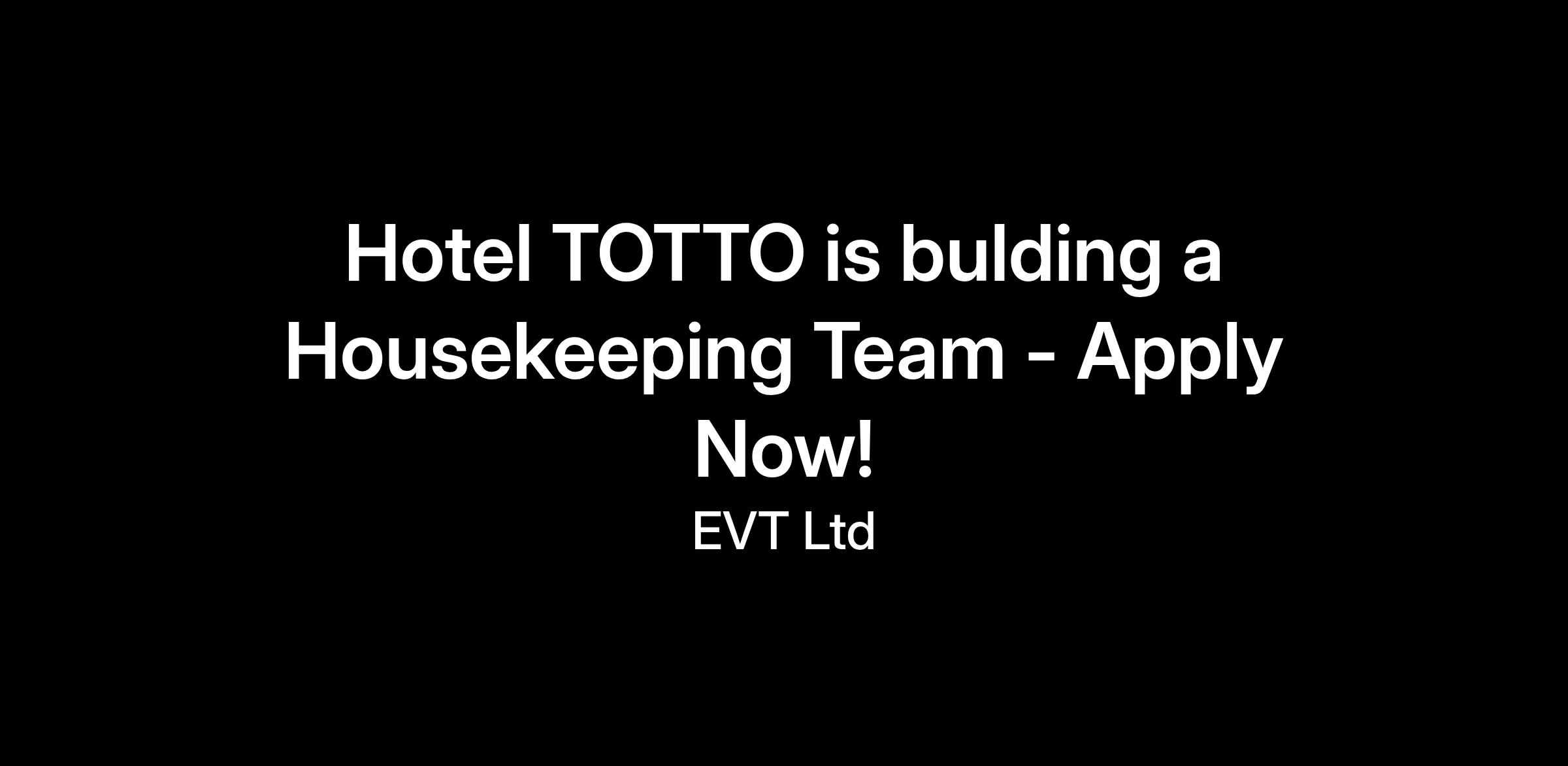 Hotel TOTTO is bulding a Housekeeping Team - Apply Now!