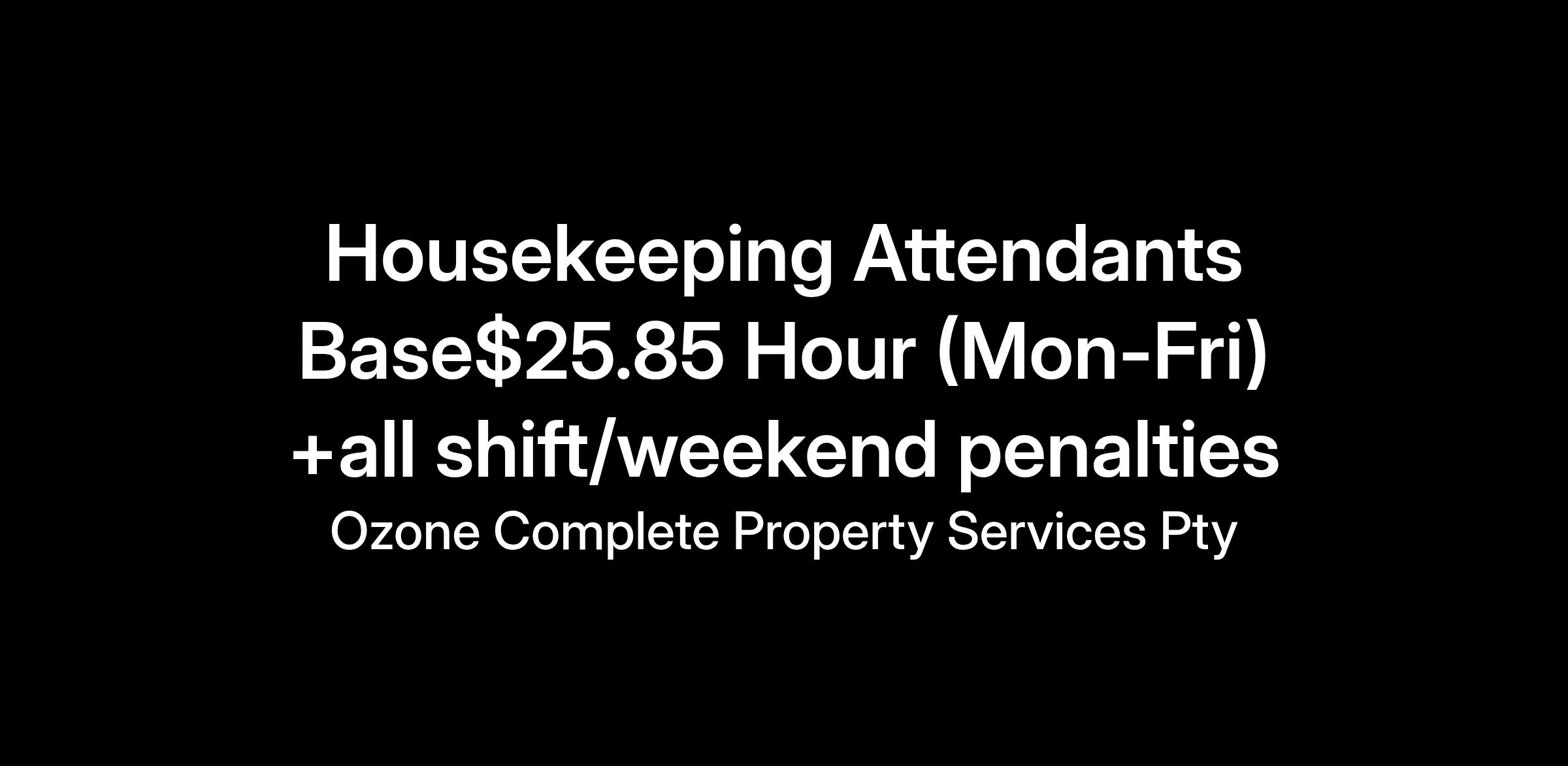 We are seeking dedicated Housekeeping Attendants to join our team in Brisbane, Queensland. This role is essential in maintaining the cleanliness and presentation of our facilities, ensuring a welcoming environment for our guests. With a competitive pay rate of $25.85 per hour and additional penalties for weekend shifts, this part-time permanent position offers flexibility and the opportunity to be part of the vibrant hospitality industry.