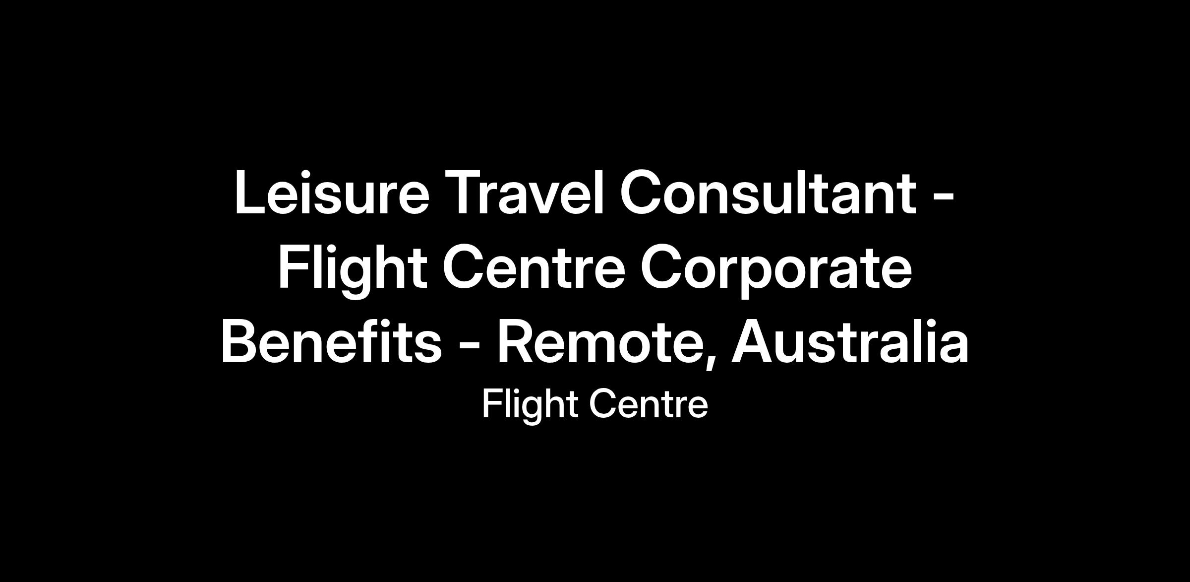 Flight Centre Corporate Benefits is looking for experienced Travel Consultants with a passion for helping our customers unwind from the 9-5 grind with unique leisure travel experiences. Corporate Benefits is a national team with consultants based all around Australia meaning you can work either fully remotely or hybrid from your local Head Office!