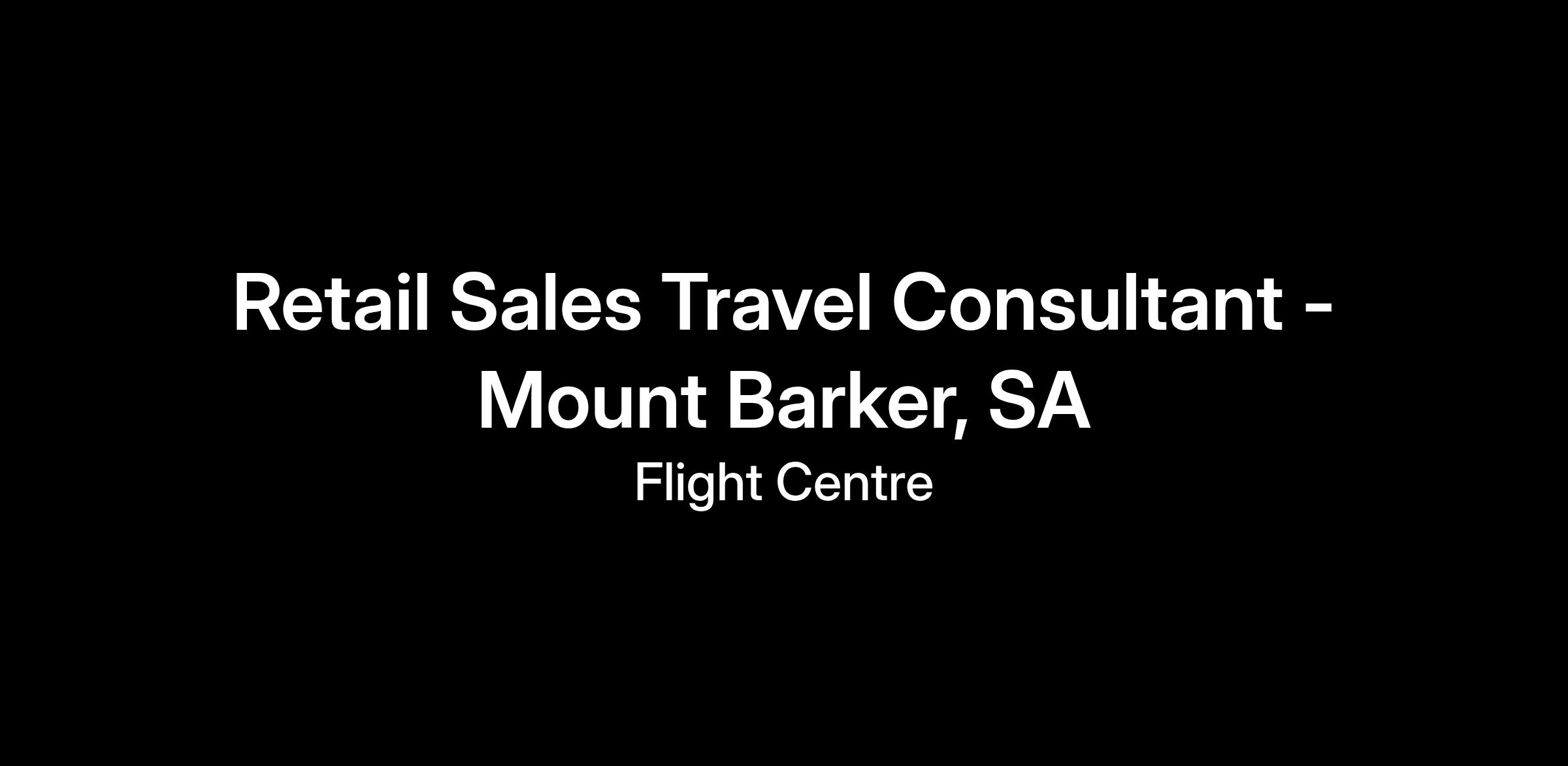 Retail Sales Travel Consultant - Mount Barker, SA